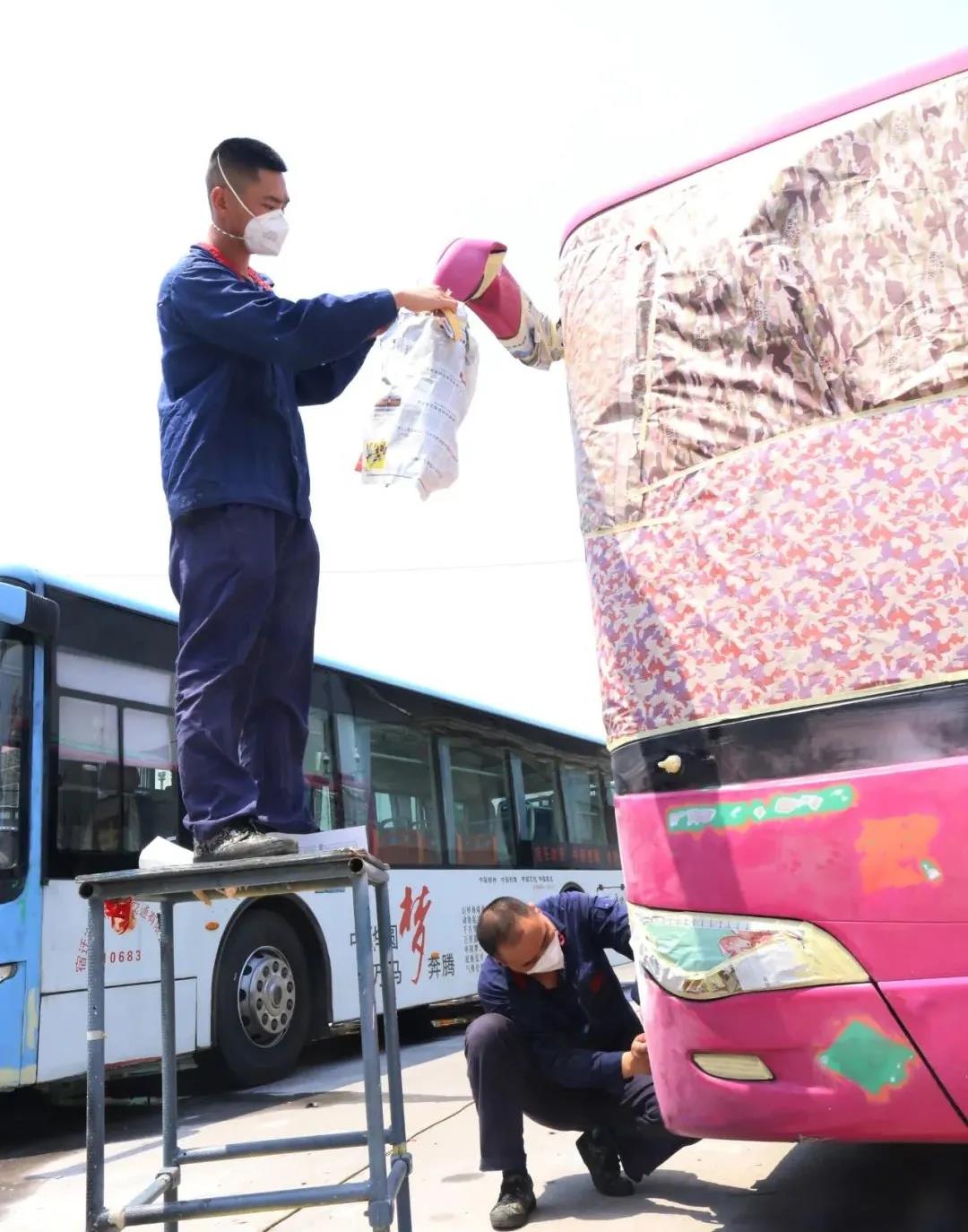 在宿遷市區(qū)的街道上,一輛輛公交車(chē)色彩鮮艷,為這座美麗的城市“錦上添花”。而讓公交車(chē)時(shí)時(shí)“貌美如初”,則離不開(kāi)“公交美容師”的辛勤付出。在公交公司修理廠(chǎng)有6名“公交美容師”,他們戰(zhàn)嚴(yán)寒、斗酷暑,為延長(zhǎng)車(chē)輛使用壽命、展現(xiàn)車(chē)輛“最美的一面”努力工作。
