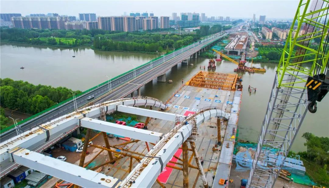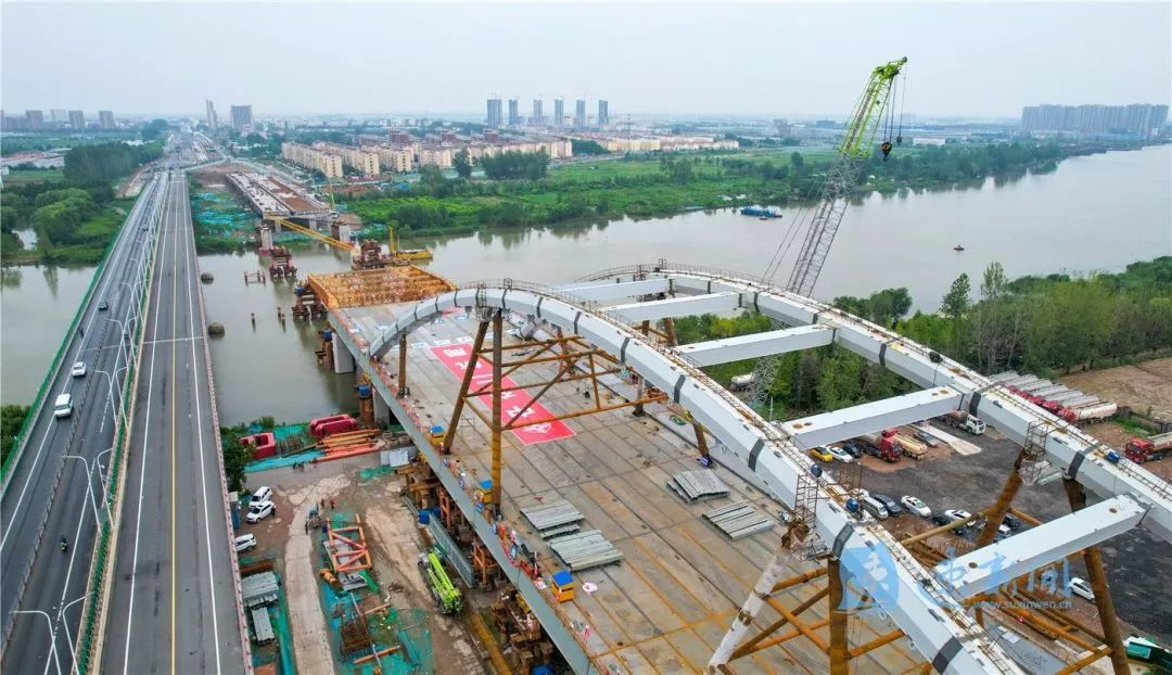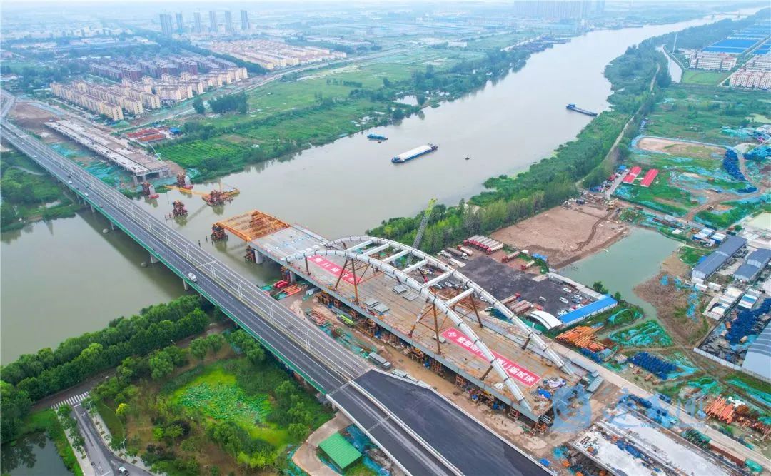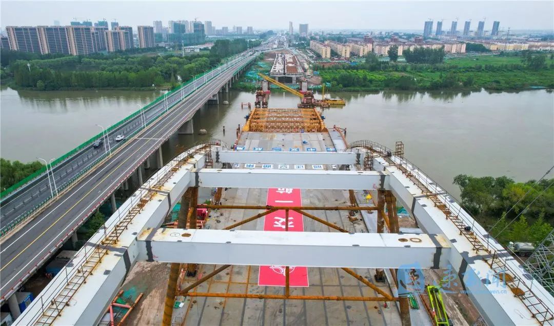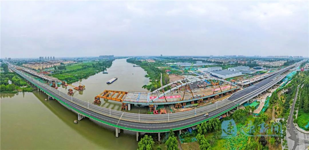7月29日,宿遷市北京路快速化改造工程跨京杭運(yùn)河特大橋開始第二輪頂推施工。