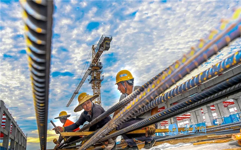 8月12日清晨,在江蘇通湖物流園二期工程施工現(xiàn)場,建設(shè)工人正在有序施工。